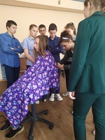 Учащиеся ГУО «Петриковская специальная общеобразовательная школа-интернат для детей с тяжёлыми нарушениями речи»  в рамках профориентации посетили ОАО «Петриковский комбинат бытового обслуживания». Парикмахером КБО с обучающимися был проведён мастер класс. Моделью была ученица 9 класса нашей школы.