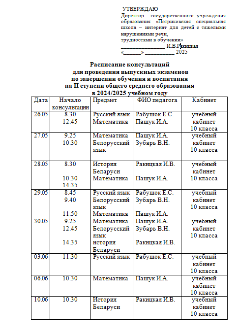 - Расписание выпускных экзаменов
