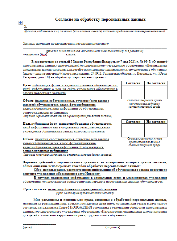 - Реестр обработки персональных данных в государственном учреждении образования «Петриковская специальная школа-интернат для детей с тяжелыми нарушениями речи, трудностям в обучении»